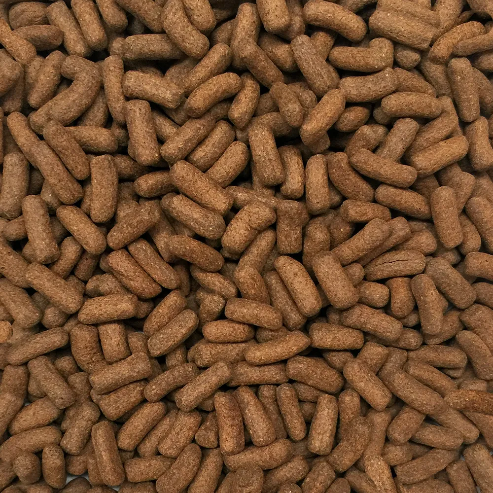 - 精選素材:蔬菜類、魚粉、植物性蛋白、酵母、礦物質(鈣、磷、鎂、鋅、鐵)、甲殼類、油脂、維他命類(A、D3)、檸檬酸